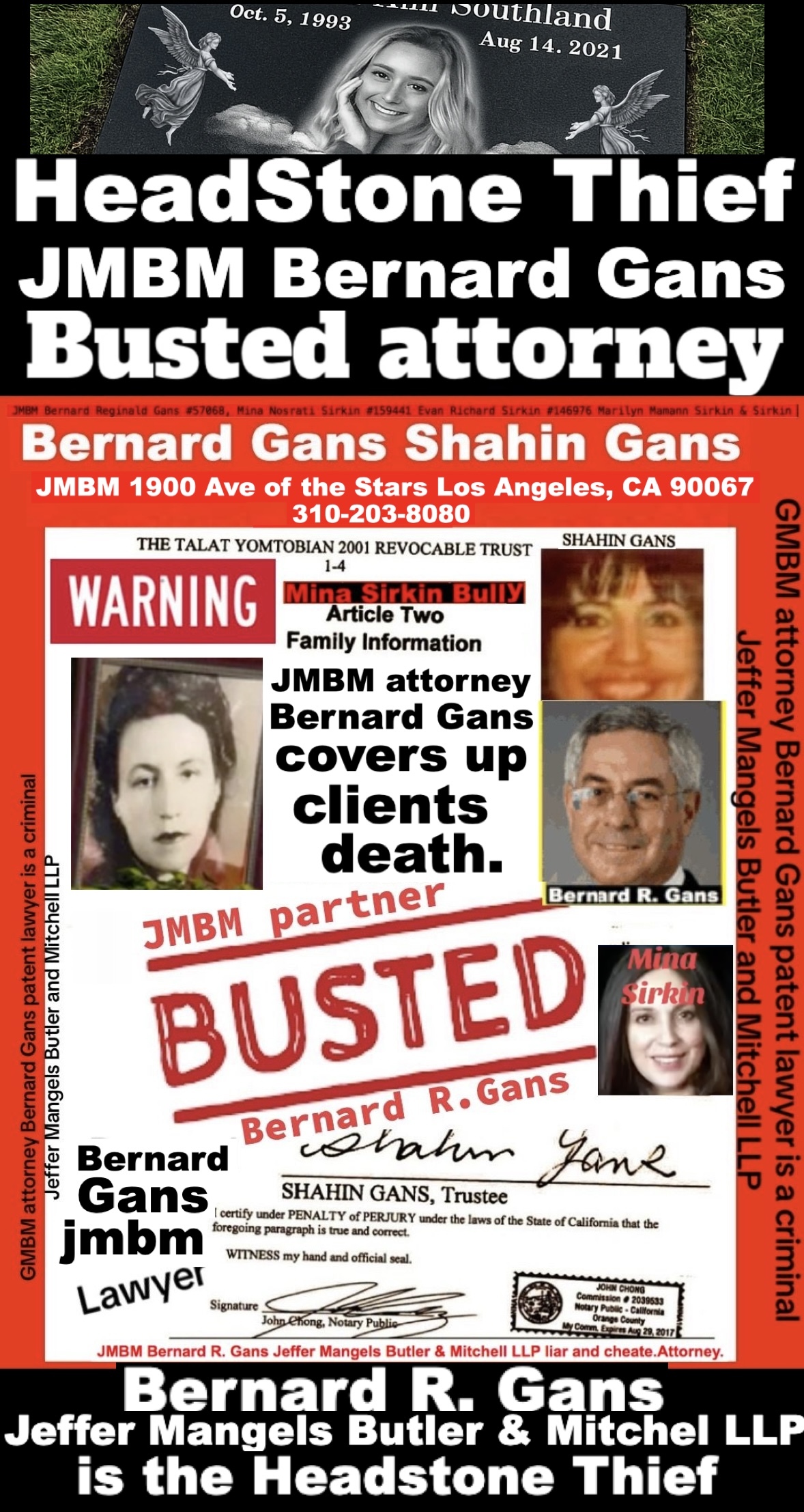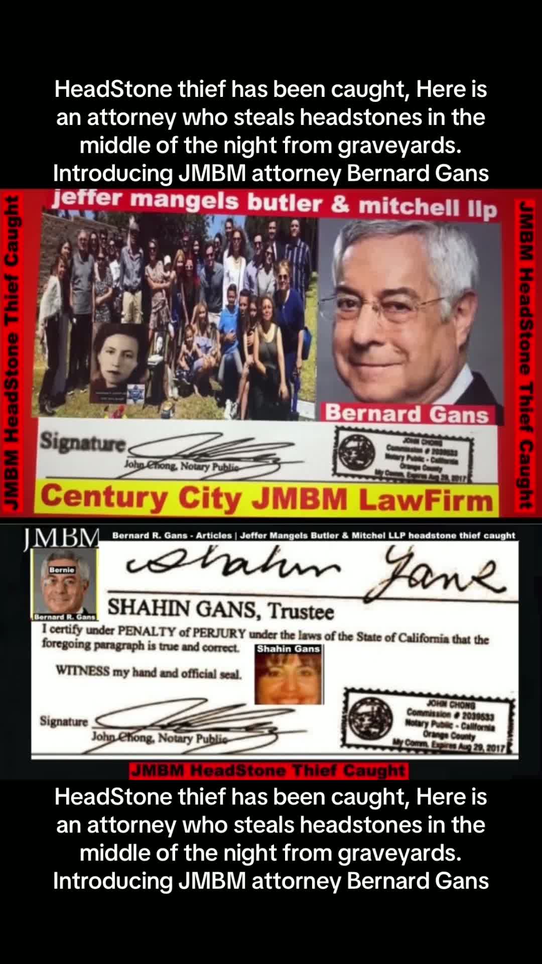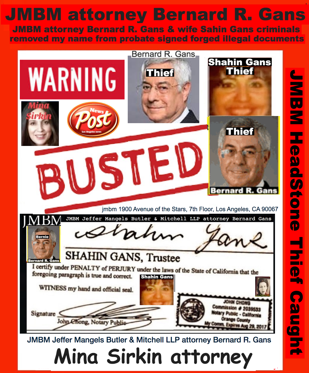 California Business Lawyers Jeffer Mangels Butler & Mitchell LLP partner Bernard gans engaging in criminal acts forging illegal documents.